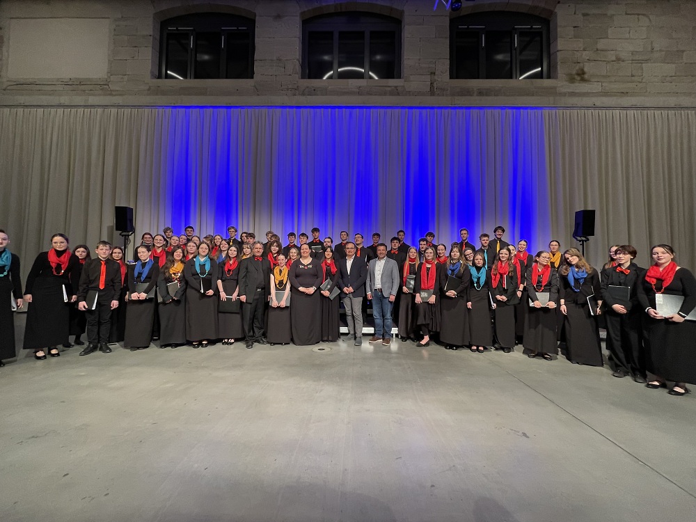Aalens Erster Bürgermeister Wolfgang Steidle begrüßte die Chöre zu Beginn des Konzerts im KUBAA und dankte allen Beteiligten für ihr Engagement. „Eine neue Freundschaft aufzubauen und den Mut zu haben, Reisen zu organisieren, um zwei so große Chöre zueinander zu bringen, verdient großen Respekt und Anerkennung“, so Steidle gegenüber den Jugendlichen und ihren Lehrkräften. Er betonte die Bedeutung des Austauschs junger Menschen für eine Welt, in der man offen aufeinander zugeht. „Musik kennt keine Grenzen. Keine Hürden. Und keinen Rang. Sie vereint Musizierende und Publikum gleichermaßen in ihrer Schönheit.“ Auch das Konzert im Veranstaltungssaal des KUBAA war mit fast 250 Besuchern ein voller Erfolg.