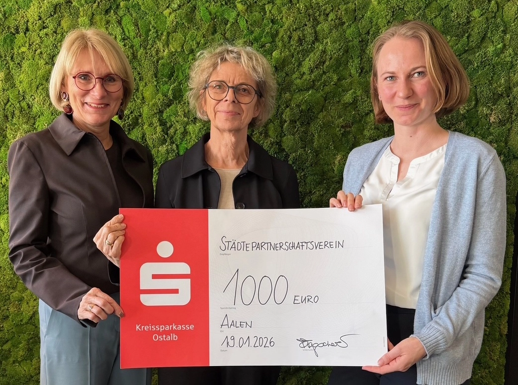 Aalen, 20. Januar 2026 – Die Wohnungsbau Aalen GmbH hat auch in diesem Jahr ihr gesellschaftliches Engagement unterstrichen und dem Städtepartnerschaftsverein Aalen e.V. eine Spende in Höhe von 1.000 Euro überreicht.